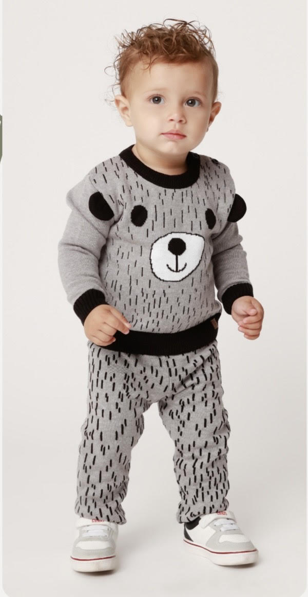 Conjunto Cinza Mescla Tricô Ursinho Teddy - Minilord