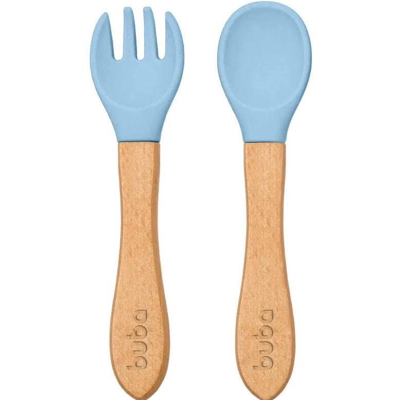O Kit Talheres em Silicone e Bambu da buba é super prático e higiênico.