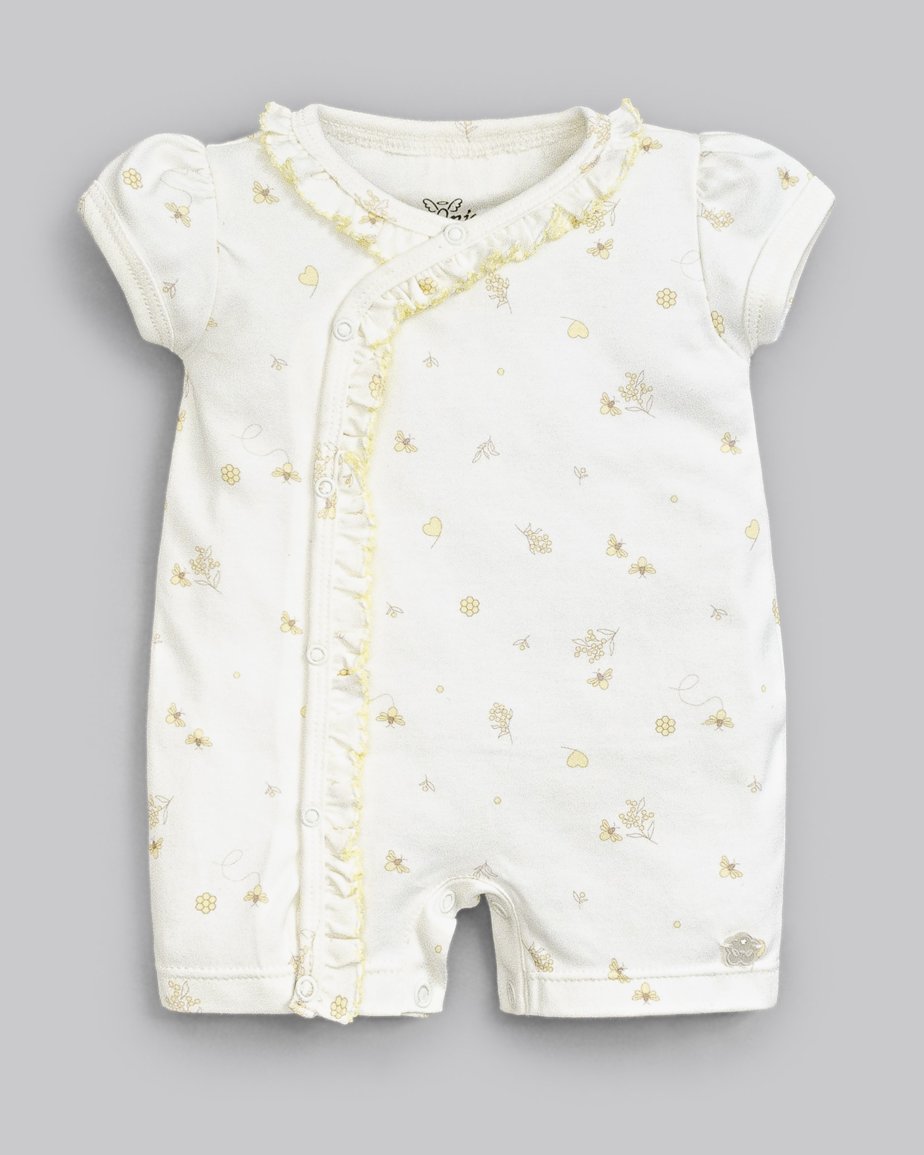 Macacão Curto Estampado Em Suedine Pima Amarelo Abelha - Anjos Baby