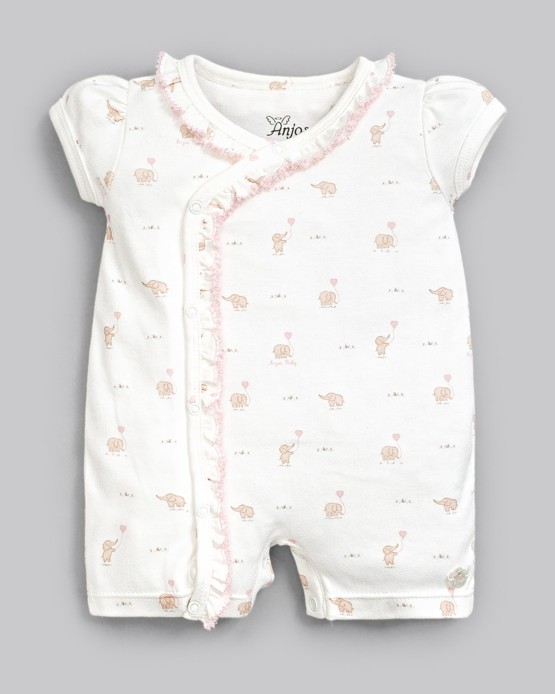 Macacão Curto Estampado Em Suedine Pima Rosa Elefante - Anjos Baby