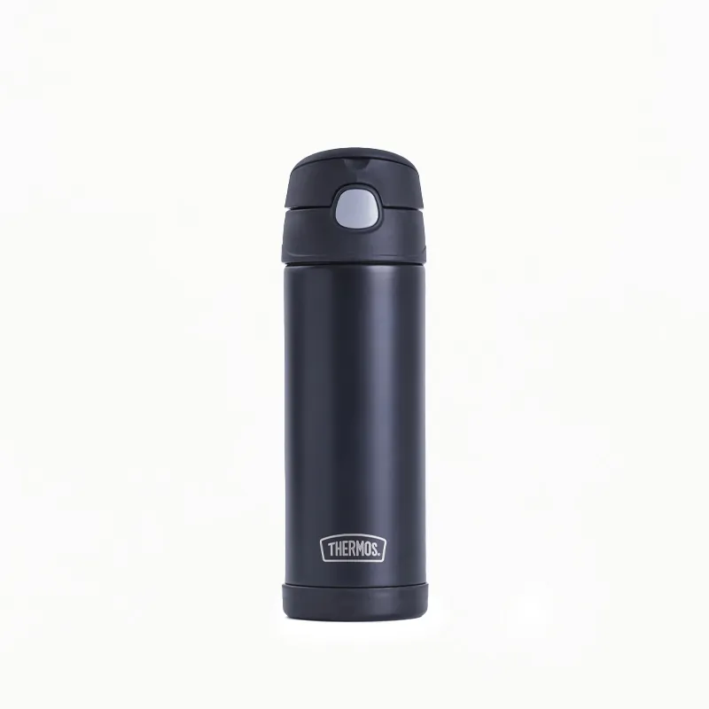 Seu sistema de abertura com botão de pressão e o bico rígido confortável, que não vaza, garantem praticidade e higiene, mantendo o bico coberto quando não está em uso. A alça de transporte integrada, com pega suave, permite fácil mobilidade, enquanto o design robusto e leve facilita o uso no dia a dia, seja na escola, em passeios ou atividades esportivas. Com capacidade de 470 ml, esta garrafa é a maior da linha Thermos Kids, perfeita para crianças maiores que precisam de mais hidratação durante o dia.