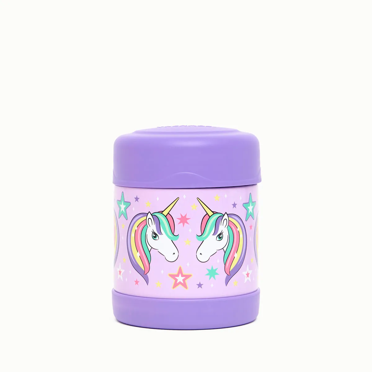 O Pote Térmico Infantil Thermos Funtainer F300 com estampa de Unicórnio Colorido - 290 ml é o aliado perfeito para pais que buscam segurança e praticidade nas refeições das crianças. Com capacidade para manter a temperatura dos alimentos quentes por até 5 horas e frios por até 7 horas, este pote em aço inoxidável é fabricado com a tecnologia exclusiva de isolamento a vácuo da Thermos, assegurando máxima durabilidade e eficiência térmica. Seguro e fácil de transportar, o Pote Térmico Funtainer F300 é leve, resistente a quedas e conta com uma estrutura de parede dupla, que mantém o exterior frio ao toque quando contém alimentos quentes e evita a condensação com alimentos frios.