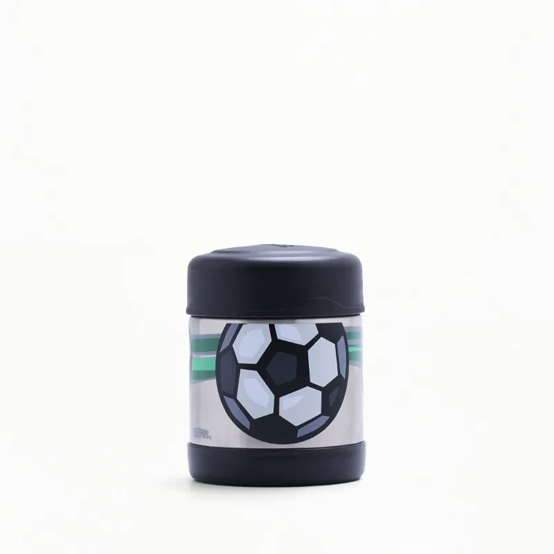 O Pote Térmico Infantil Thermos Funtainer F300 com estampa de Futebol - 290 ml é o aliado perfeito para pais que buscam segurança e praticidade nas refeições das crianças. Com capacidade para manter a temperatura dos alimentos quentes por até 5 horas e frios por até 7 horas, este pote em aço inoxidável é fabricado com a tecnologia exclusiva de isolamento a vácuo da Thermos, assegurando máxima durabilidade e eficiência térmica. Seguro e fácil de transportar, o Pote Térmico Funtainer F300 é leve, resistente a quedas e conta com uma estrutura de parede dupla, que mantém o exterior frio ao toque quando contém alimentos quentes e evita a condensação com alimentos frios.