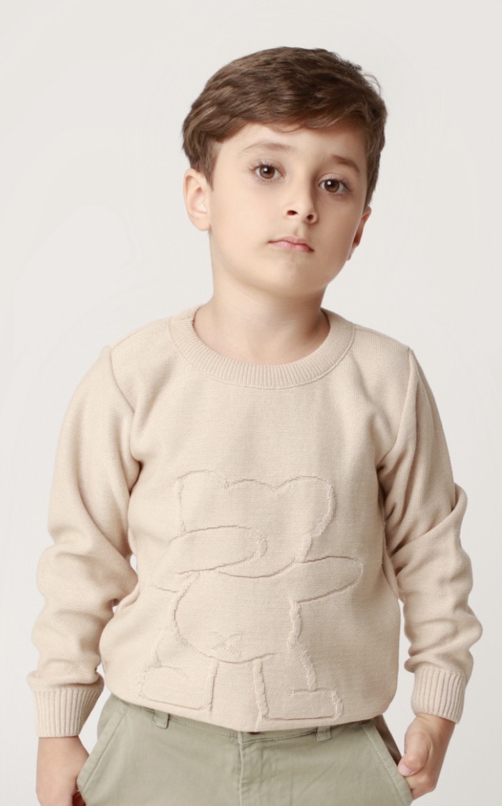 Sweater Manga Longa Tricô Bege - Minilord